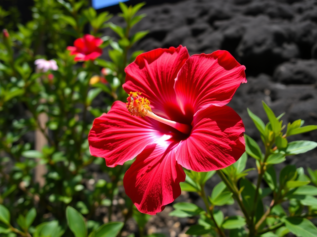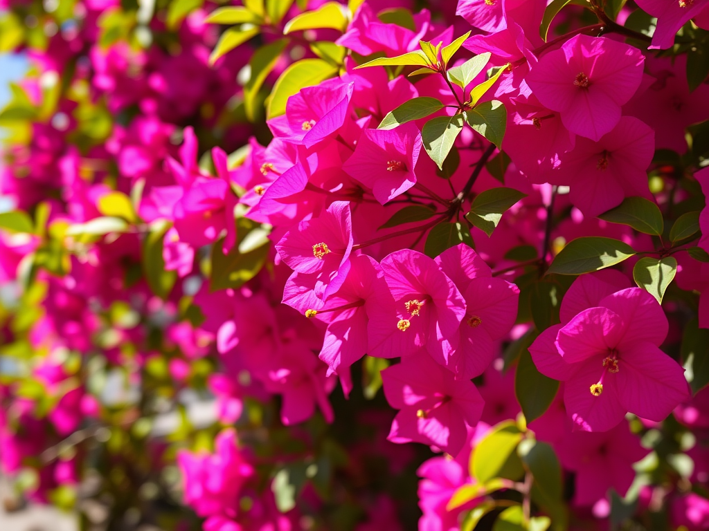 - Zierpflanzen wie Bougainvillea und Hibiskus in Gärten und Parks.
