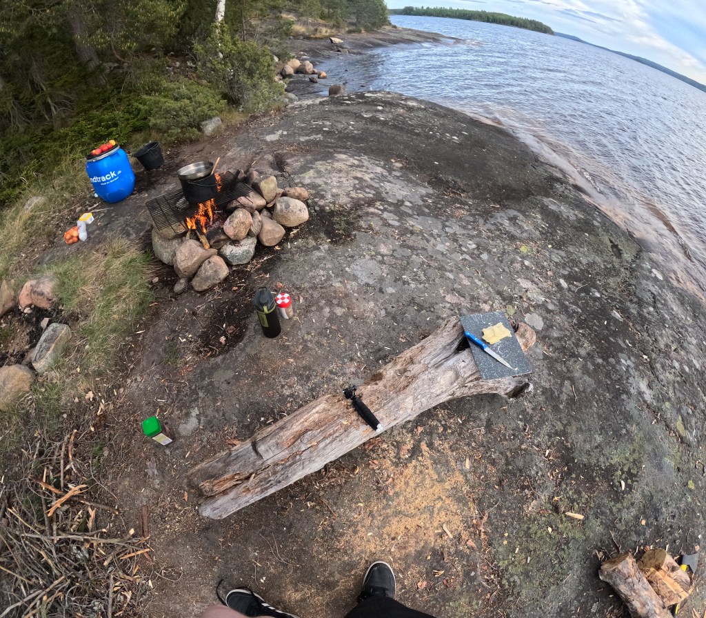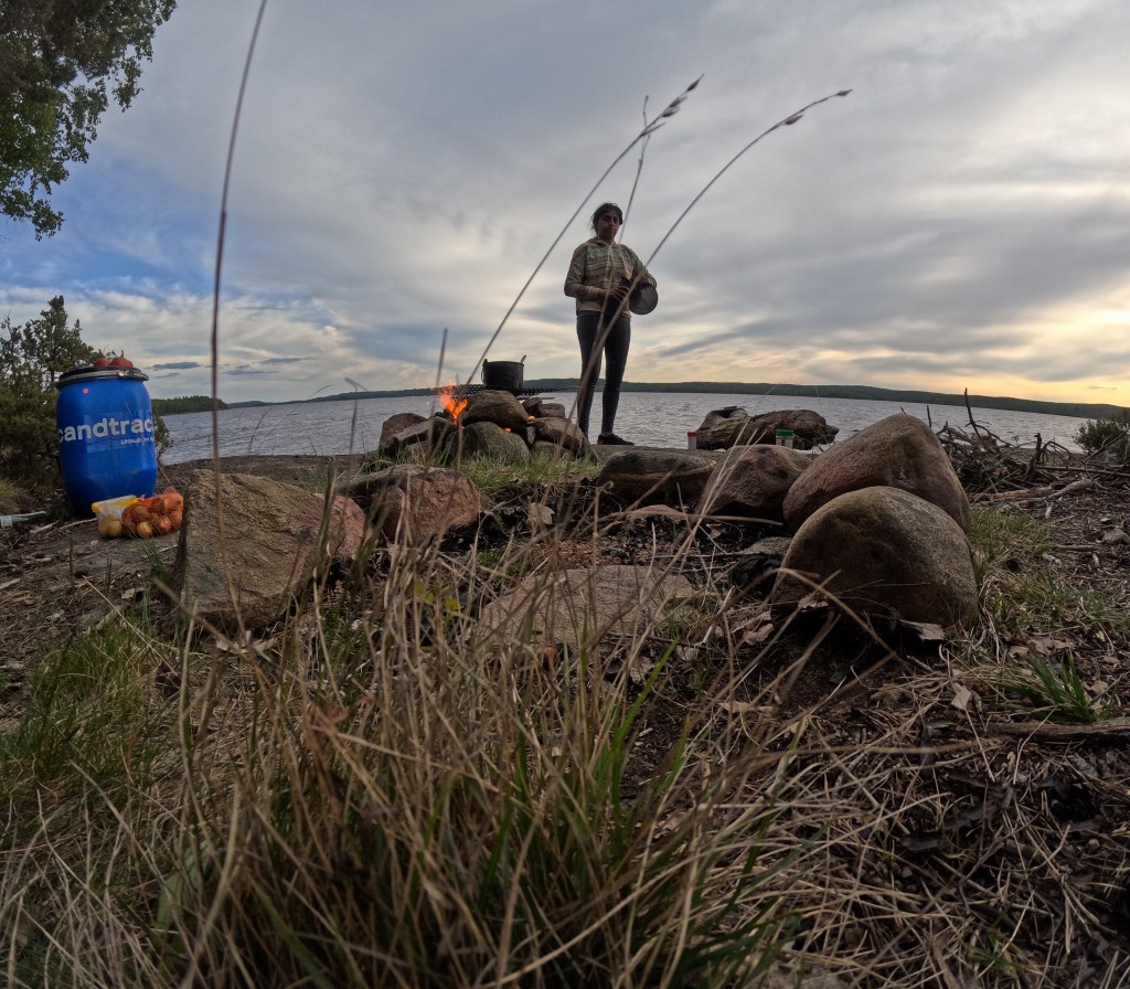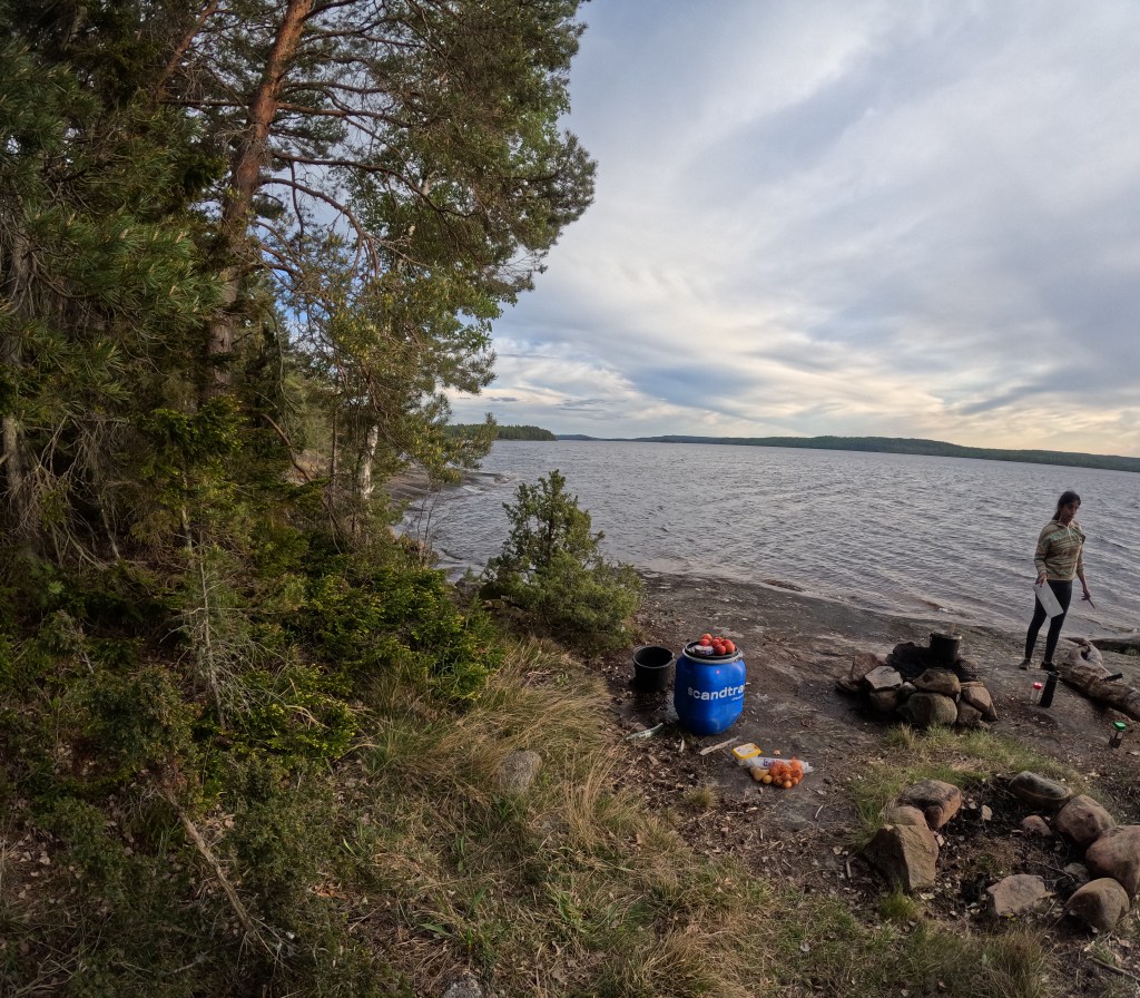 Was war geschehen? Ein plötzlicher Wetterumschwung hatte die Wellen auf dem Foxen-See emporsteigen lassen, so hoch, dass sie beinahe die Oberkante unseres Kanus erreichten. Schwer beladen war unsere Lage kritisch; es war entscheidend, im Zickzack durch die Wellen zu navigieren, um nicht mitten auf dem See unser gesamtes Gepäck zu verlieren. Zu diesem Zeitpunkt war uns noch nicht bewusst, dass Rucksäcke bei Kanureisen praktisch nutzlos sind – schwimmende Nahrungsmittelboxen, die man geschickt mit Paracord miteinander verbindet, erweisen sich als weitaus sinnvoller. Sie sind nicht nur verlustsicher, sondern dienen auch als nützliche Schwimmhilfen.