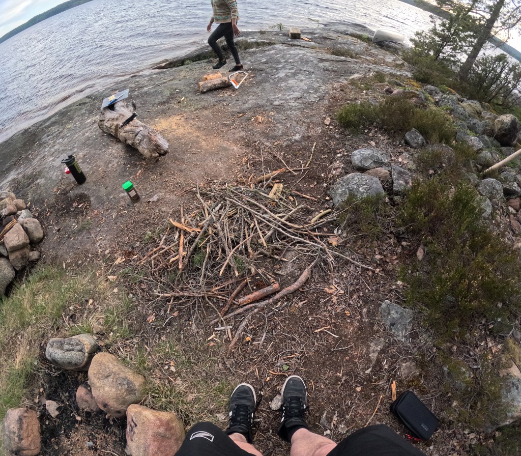 Zumeist haben die Projekte keinen dauerhaften Bestand, da man gemäß dem schwedischen Jedermannsrecht den Platz so hinterlassen muss, wie man ihn vorgefunden hat. Müll ist selbstverständlich zu entsorgen. Der Zweck unserer Bushcraft-Projekte – der Fähigkeit, in der Natur zu leben und zu überleben, wobei Fertigkeiten wie Feuermachen, Nahrungsbeschaffung und der Bau temporärer Unterkünfte im Vordergrund stehen – und der anderen Dinge, die wir dort errichtet haben und noch errichten werden, liegt daher nicht im bloßen Erhalt, sondern in einer tiefen, persönlichen Erdung, einem erfüllenden Gefühl des Willkommen-Seins in der Natur und dem Streben nach einem besseren, gesünderen Leben. Ihr merkt vielleicht, worauf ich hinauswill: Das wahre Lebensglück lässt sich nicht immer mit Geld erkaufen. Natürlich dokumentieren wir unsere Erlebnisse mit Smartphones und GoPros, doch die Abstinenz von sozialen Medien und anderen Themen wie Weltpolitik wird über Wochen hinweg völlig irrelevant. Genau an diesem Punkt lernt man sich selbst kennen. Wenn man gänzlich frei von den Einflüssen anderer ist, erkennt man erst, was im Leben wirklich zählt.